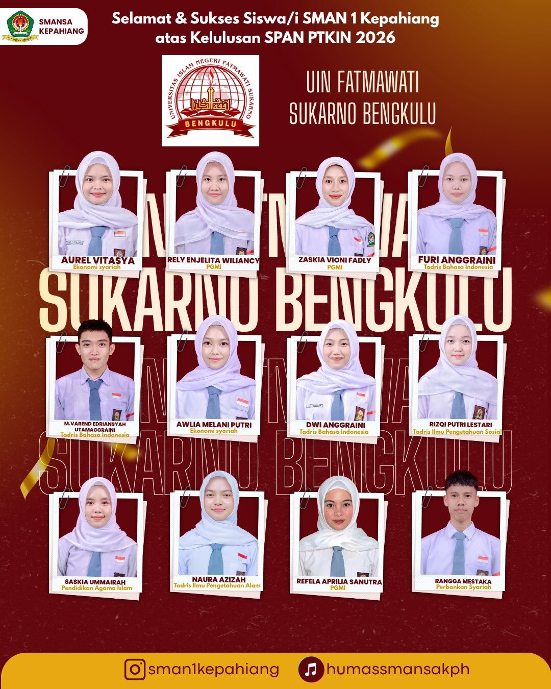 12 Siswa Lolos UIN Fatmawati Sukarno dan 2 Siswi ke IAIN Curup, SMAN 1 Kepahiang Ukir Prestasi di SPAN PTKIN 2026